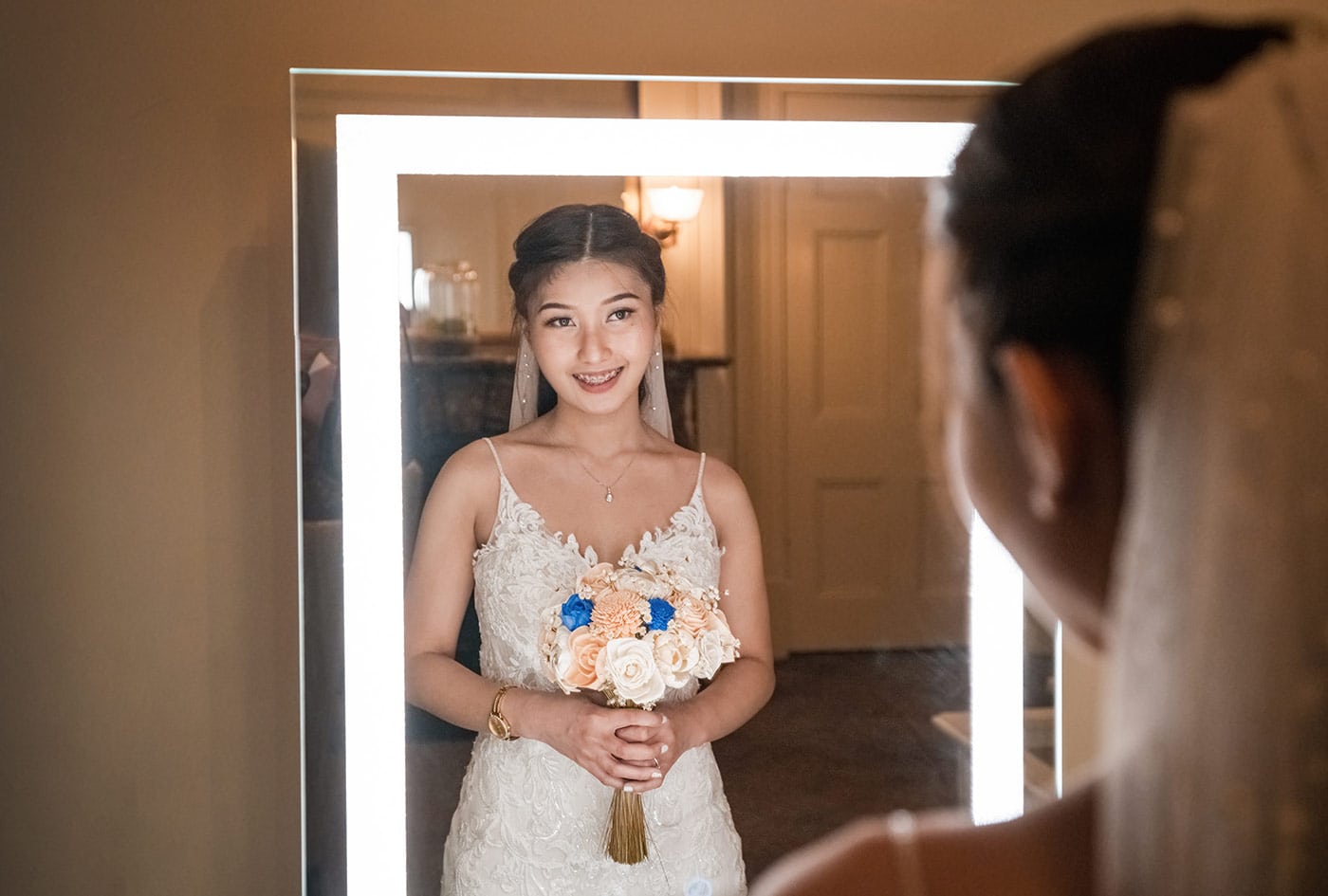 Prior to their Ayers House wedding ceremony, amongst the running about that Lester was doing trying to get the live stream to work correctly, Mona was waiting in a small room down the hall, as their guests milled about thir wedding sign – so we took a few group shots while we were waiting.
